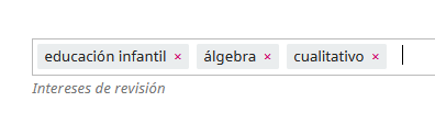 En la tercera pestaña "tareas", puede añadir los intereses de temas de los cuales tendría disposición a recibir para revisión. Por favor, recuerde añadir "cualitativo" o "cuantitativo", según sea su área de experticia.